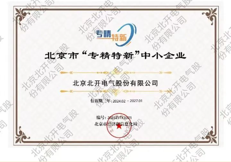 報佳音,傳喜訊。經(jīng)北京市經(jīng)濟(jì)和信息化局認(rèn)定,北京北開電氣股份有限公司順利通過“北京市專精特新中小企業(yè)”、“北京市創(chuàng)新型中小企業(yè)”認(rèn)定。