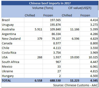 2017年巴西和烏拉圭是中國(guó)的牛肉主要供應(yīng)國(guó)