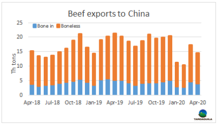 隔離令開始時的消費熱情褪去,國內牛肉消費下降