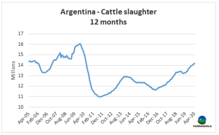 盡管受到隔離令的影響,4月阿根廷牛只屠宰量118萬頭,較3月增長8.7%。今年前4個月阿根廷牛只屠宰量達442萬頭,比去年同期增長5.2%。4月巴西美麗華集團的Swift廠屠宰量排在首位,在2020年屠宰量排名中超過阿根廷連鎖超市集團COTO重新成為排在第一位,COTO排在第二位。Rioplatense,Arrebeef和Gorina位列其次,分別排在第三第四和第五位。由于至中國貿易量下降隨后又恢復,母牛屠宰量占48.6%,與3月屠宰量相比有所提高。