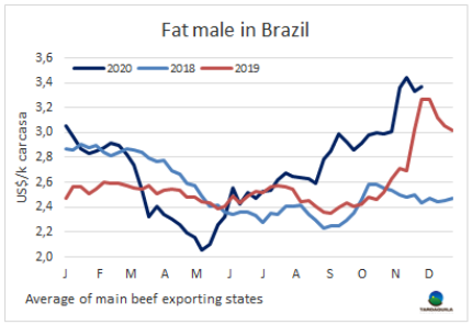 巴西牛肉工廠對節假日和夏季的需求持有樂觀的預期。上兩周育成牛的雷亞爾價格下跌,一些工廠放緩了屠宰節奏,據貿易商稱,巴西本地市場強勁,與近幾年的情況截然不同。由于新冠疫情,成千上萬的巴西人不會離開本國,這在某種程度上促進了當地消費。據消息人士稱,東北地區的許多酒店沒有遵守衛生當局建議的60%客流量的防疫措施,大多數情況下都是滿客的。最近幾天的電視畫面也顯示,里約熱內盧的海灘上擠滿了人。“所有跡象都表明,這個非典型假日國內消費將非常龐大,這應該能保持價格堅挺。”
