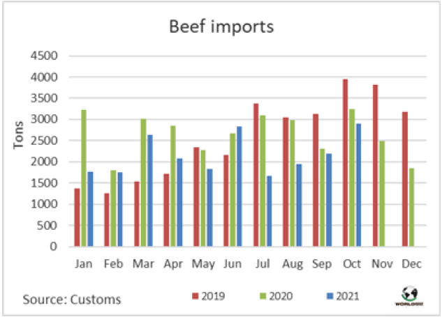 10月南美市場對中國牛肉出口量下降了約10萬噸