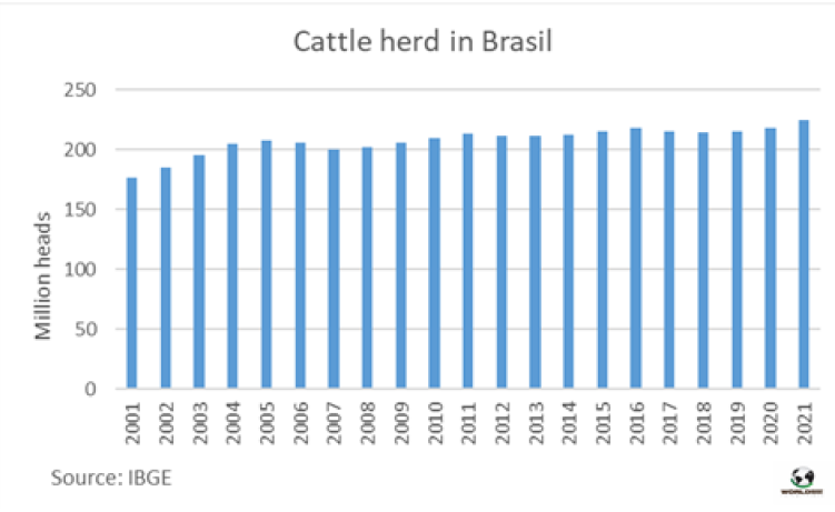 2021年全球最大的肉類出口商巴西的活牛和生豬存欄較去年增長了3%,創歷史新高。根據巴西地理和統計研究所(IBGE)發布的數據,去年巴西的活牛存欄達到2.246億頭,生豬存欄增加到4250萬頭。巴西活牛存欄連續三年增長,2021年存欄數量打破了2016年保持的2.182億頭。根據IBGE的說法,這一紀錄是牛犢出生數量增加的結果,而由于缺乏達到屠宰年齡的牛,屠宰量下降。巴西中西部地區馬托格羅索州是活牛存欄量最大的地區,存欄約3240萬頭,占整個巴西的14.4%2021年生豬存欄較去年增長了3.2%,約4200萬頭,達1997年開始統計以來最高。