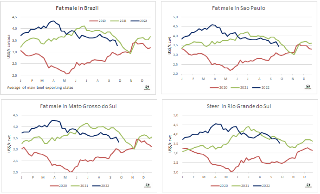 出口閹牛價格下跌了5比索,質量較好的牛例外