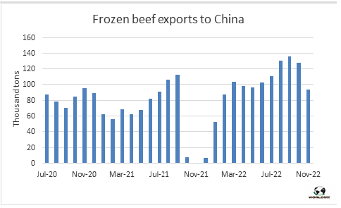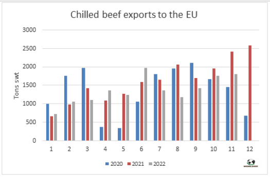 冰鮮牛肉對歐盟出口量連續(xù)第五個月同比下降