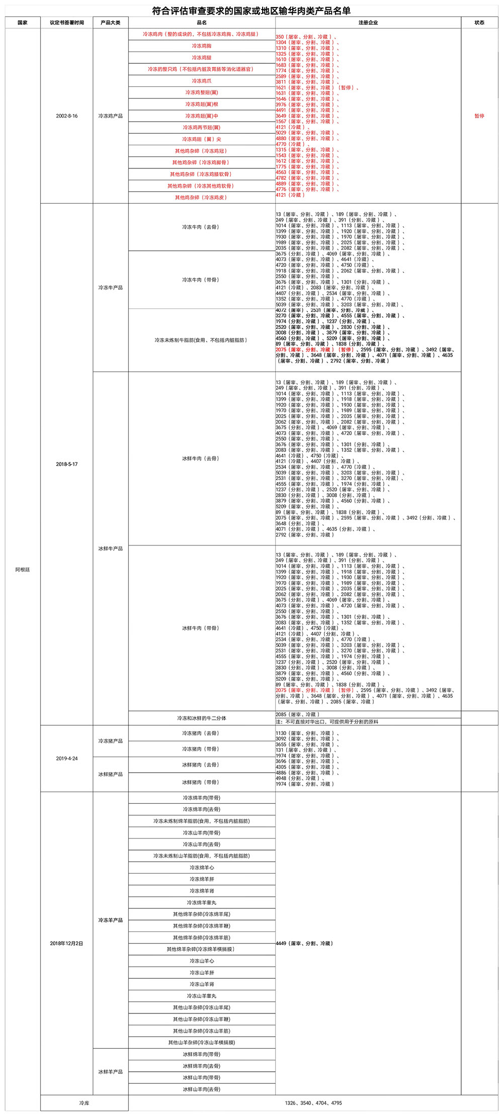符合評估審查要求的國家或地區輸華肉類產品名單(2023年2月17日更新)