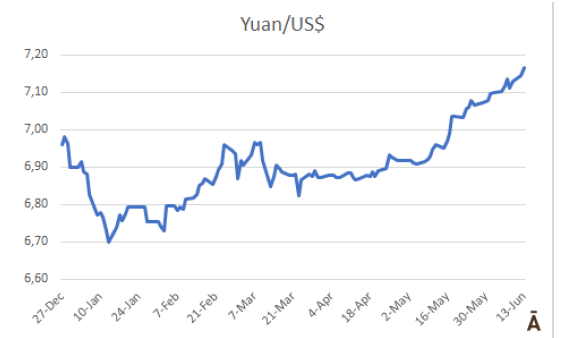中國市場情況仍然不容樂觀。價格不知道何時會觸底,對于拐點何時到來仍有很大的不確定性。進口牛肉市場持續下調。另一個使市場情況變得復雜化的因素是人民幣的貶值。人民幣在上周貶值0.7%,在過去五個月累計貶值6.9%,使進口產品在成本更高。另一方面,央銀行宣布將短期利率從2.0%降至1.9%后,意味著政策性降息啟動,預計該趨勢將進一步加劇。