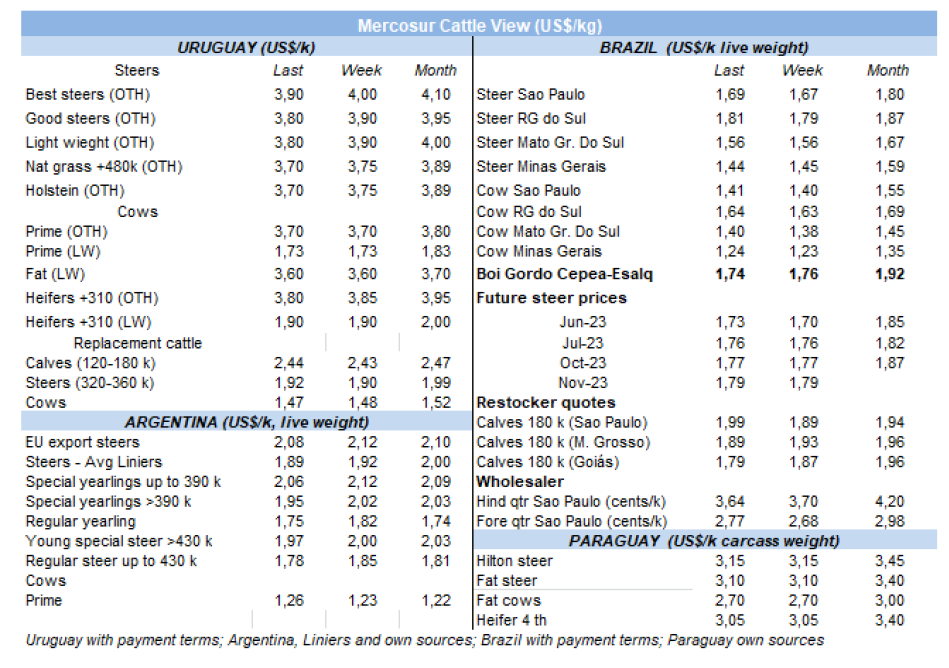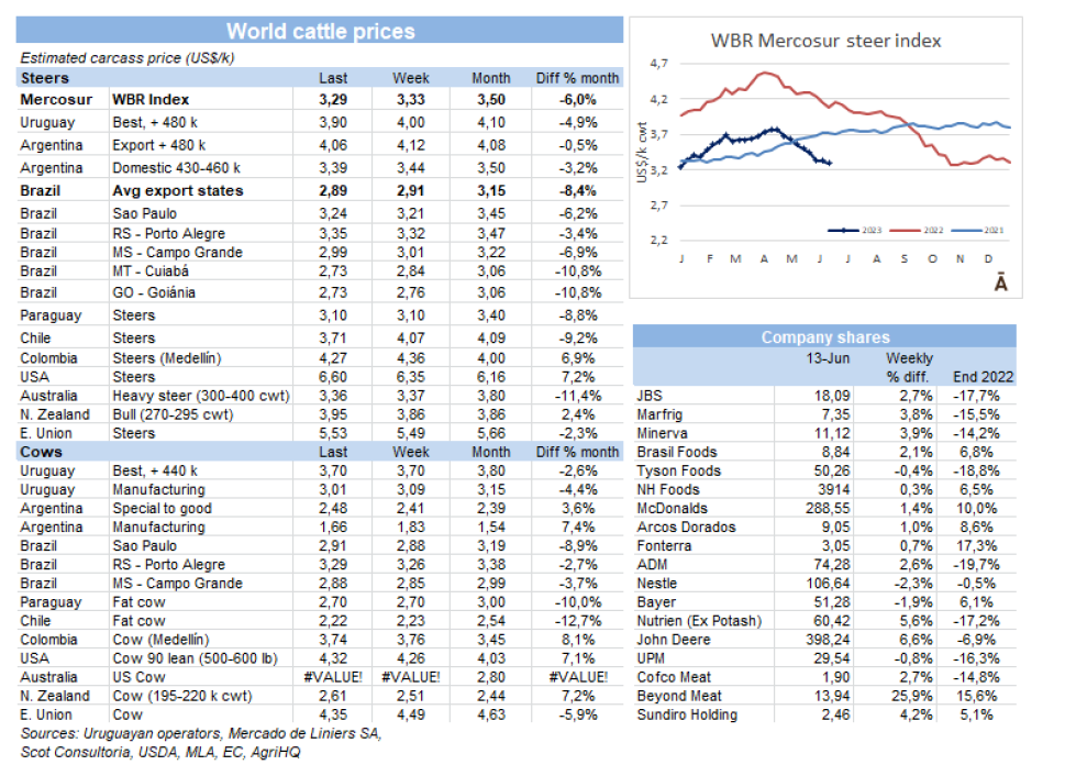 在該地區唯一一個價格沒有下降的國家是巴拉圭,那里的屠宰牛仍為$3.10/公斤。
