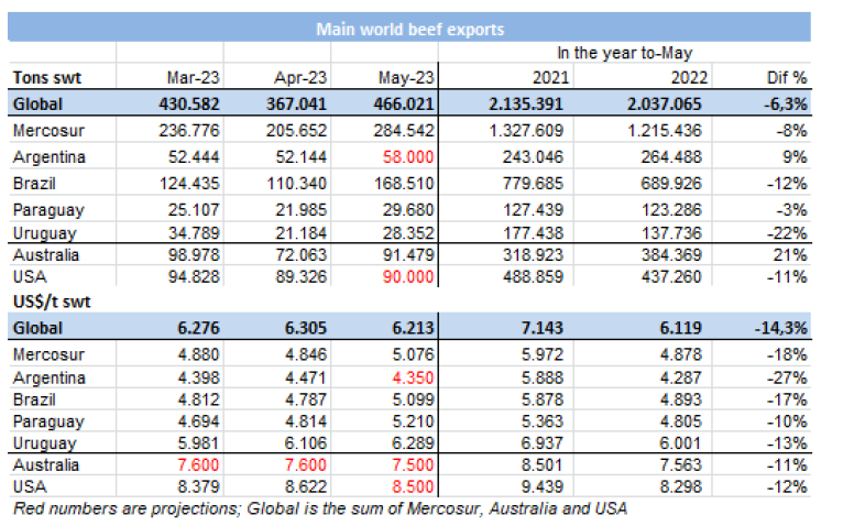 5月份全球對華牛肉出口量強勁增長