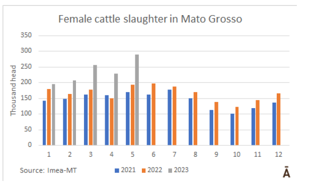 馬托格羅索州農業經濟研究所報告稱,從草料產量較低的季節開始,加上牛周期的低谷期,導致馬托格羅索州5月母牛屠宰量創新高。