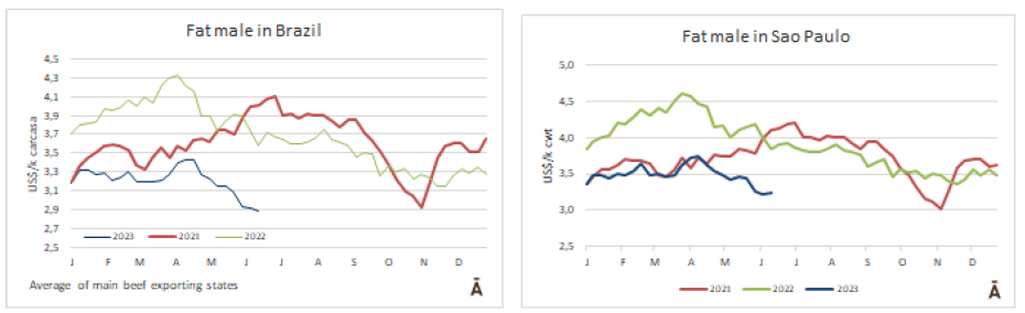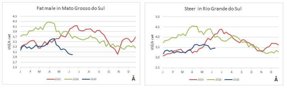 自4月初以來,主要出口州的成品牛價格下跌18%,從R$/@258下降到R$/@211。本周已經是連續第十次下跌。