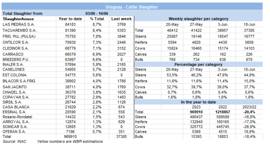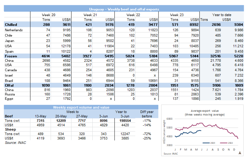 與該地區其他國家相比,烏拉圭簽訂運往以色列的常規猶太屠宰合同的可能性一直很低,因為需要支付較高的原料價格。然而在上周,一些進口商完成了飼養牛的交易,因為優質草食動物的供應非常有限。一位市場人士說他們正在談判,一些阿根廷工廠已經停止了每噸$8000的FOB報價。