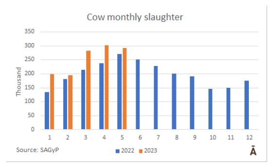 母牛屠宰量繼續增長,但與4月份相比有所下降
