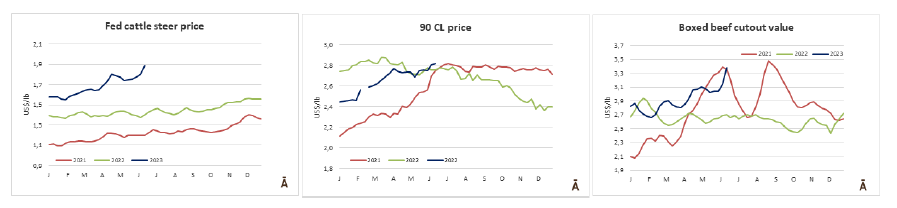 用于出口的閹公牛價格相對穩定,母牛價格有輕微回彈