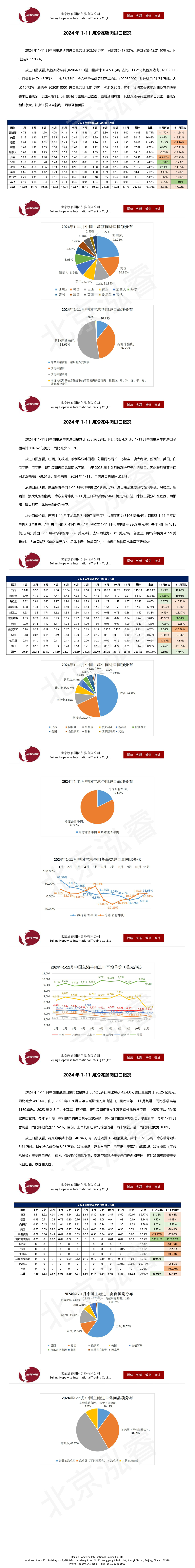 2024年1-11月冷凍豬牛禽肉海關進口數據