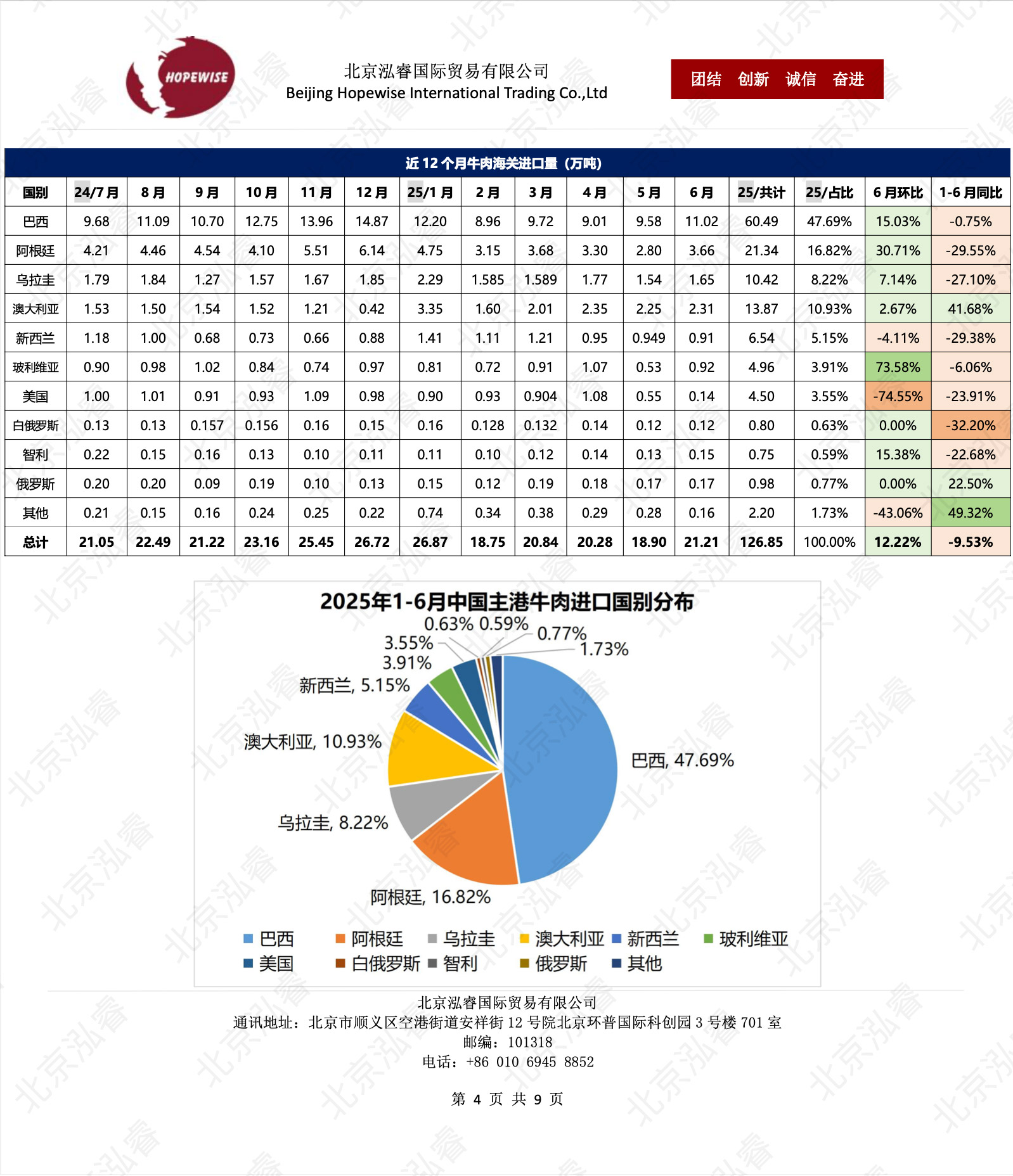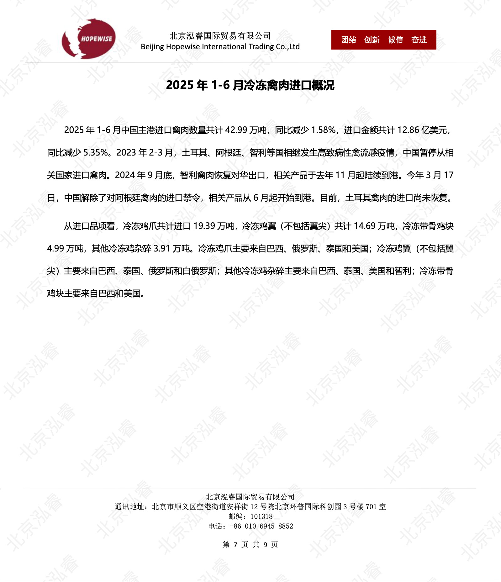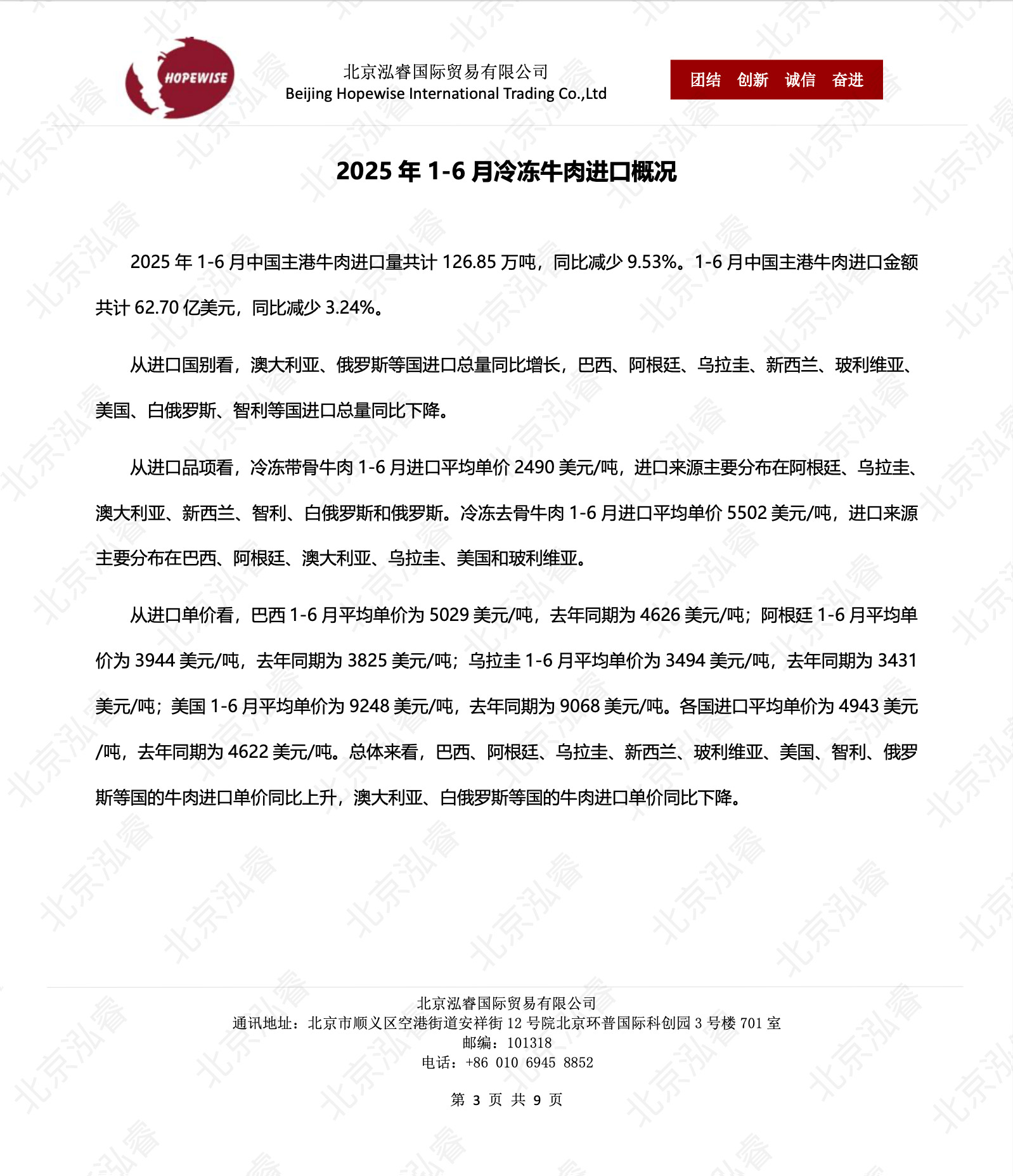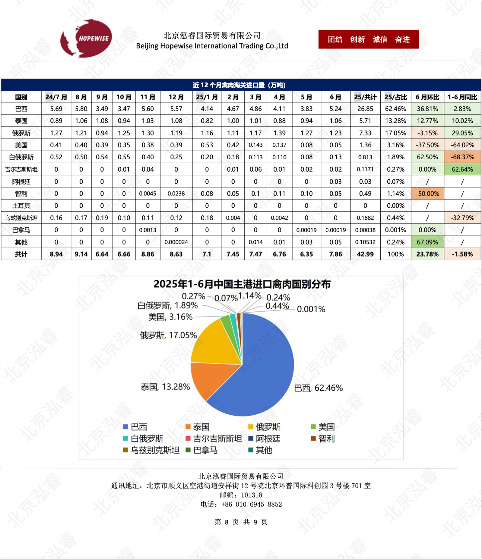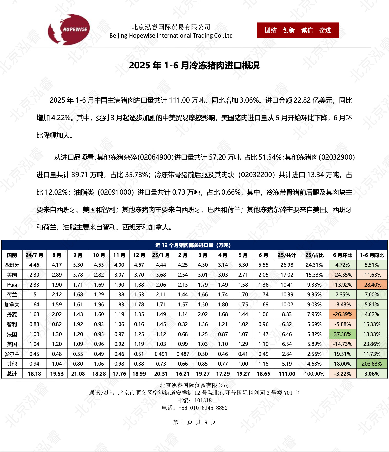 2025年1-6月冷凍豬牛禽肉海關進口數據