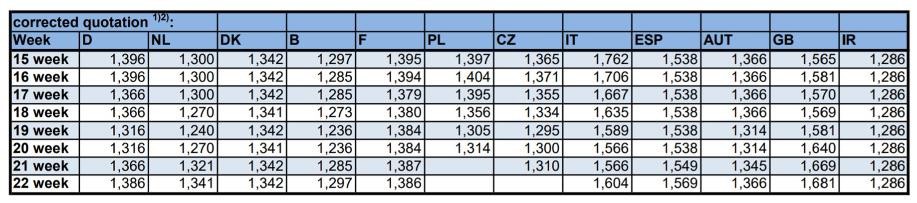 比利時和英國豬價上漲幅度相對較小,上漲幅度大概在 1 歐分左右。丹麥和法國豬 價不變。除了公眾假日以外,多起罷工對屠企正常產出造成影響。
