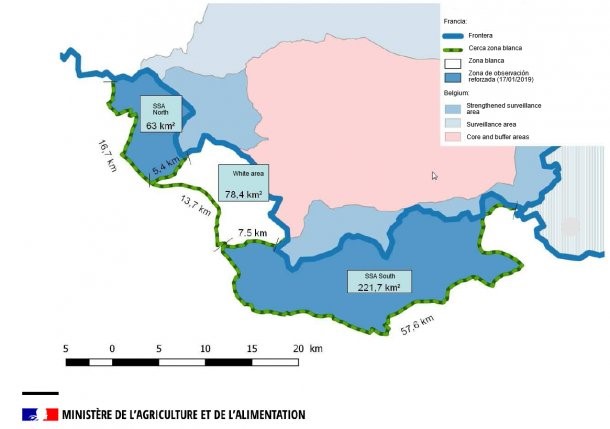 方圓78公里的“白色地帶”是離比利時最新ASF疫情最近的地方。另外第四周要建一個長26.6公里的圍欄。自1月19日起,為減少ASF疫情擴散,禁止從事林業經營(無論是經濟活動還是休閑活動)。將通過獵人、國家狩獵和野生動物辦事處和國家森林辦事處鼓勵大規模捕獵,減少野豬數量。國家每捕殺一頭野豬補貼獵人100歐元。