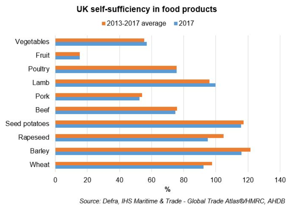 英國可以自給自足的食品有:羊肉、土豆、大麥。其他都依靠進(jìn)口。