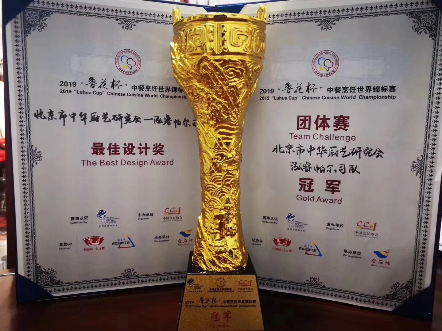 通過激烈的比賽,北京市中華廚藝研究會(huì)——泓睿帕爾司隊(duì)獲得2019中餐廚藝世界錦標(biāo)賽金牌!