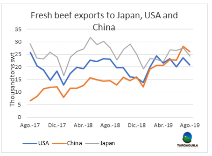 八月牛肉出口增長,但在年度對比中仍處于低水平