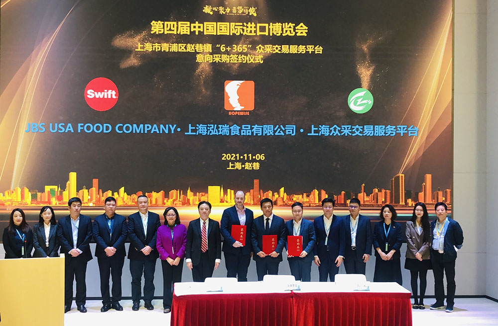 活動上,巴西集團旗下的SEARA MEATS與北京泓睿&上海泓瑞食品有限公司和上海眾采企業發展有限公司簽約。巴西集團美國公司JBS SWIFT與北京泓睿&上海泓瑞食品有限公司和上海眾采企業發展有限公司簽約,共涉及9000萬美元的采購意向訂單。