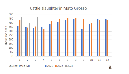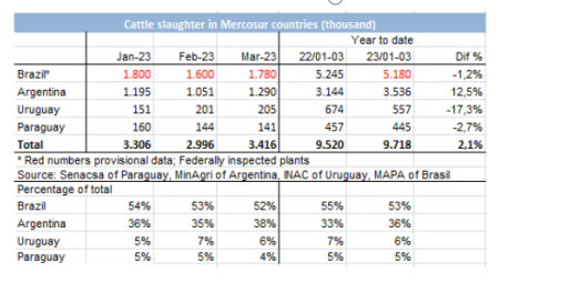 IMEA的數據顯示,馬托格羅索州的屠宰場在3月份屠宰了472.47萬頭牛,環比增長16.6%,同比增長32%。