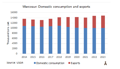 目前烏拉圭在中國所擁有的優勢在于帶骨肉和內臟的進口許可,但是這個優勢很可能會消失。而如果中國開放更多的巴西工廠將會導致烏拉圭被迫在價格而非質量上競爭。