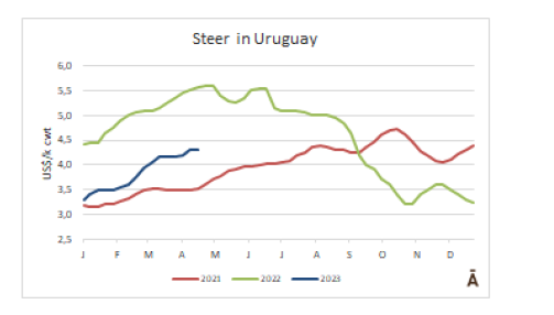 在巴拉圭,用于屠宰的雄魚本周從2美分上漲至3.62美元,而在烏拉圭,特殊牛種則保持穩定在4.30美元每公斤。