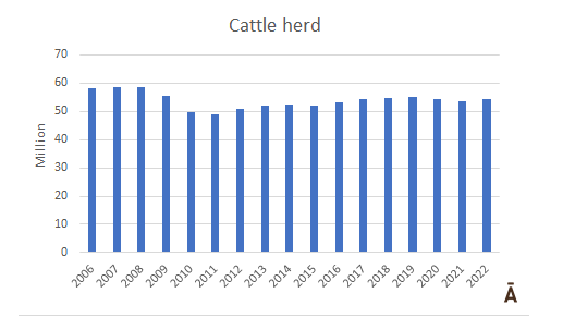 2022年活牛存欄增長1.5%,但仍未達到 2016-2019年的平均水平