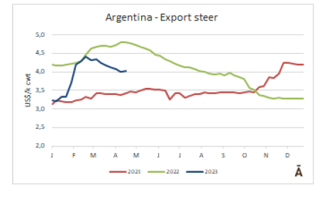 阿根廷的閹牛本周從3美分上漲至$4.4/kg cwt,這一參考包含了對牛肉出口征收9%的稅。