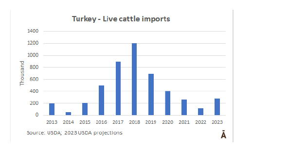 美國農業部預測2023年土耳其牛進口量將增加一倍以上