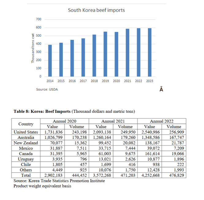 美國農業部在其專注于韓國畜牧業生產的出版物中表示,韓國消費者對牛肉和豬肉的需求回升,加上零售價格上漲,導致2022年和2023年國內屠宰量和進口總量增加。然而,通貨膨脹和貨幣波動等宏觀經濟挑戰導致韓國畜牧業生產者的投入成本急劇上升,迫使消費者重新考慮消費決定。根據美國農業部的數據顯示,"國內韓牛的充分供應,加上美國的供應緊張,這將增加韓國明年在肉類市場的市場競爭力"。