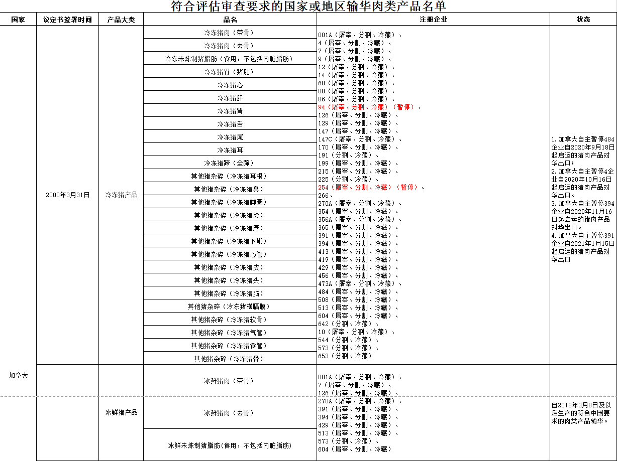 符合評估審查要求的國家或地區輸華肉類產品名單(2023年6月7日更新)
