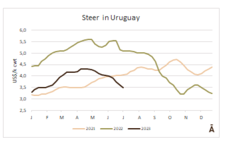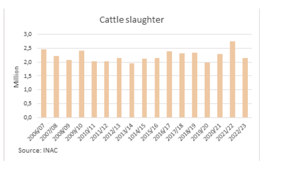 2022-2023年期間烏拉圭的牛肉產(chǎn)量下降了約15萬(wàn)噸