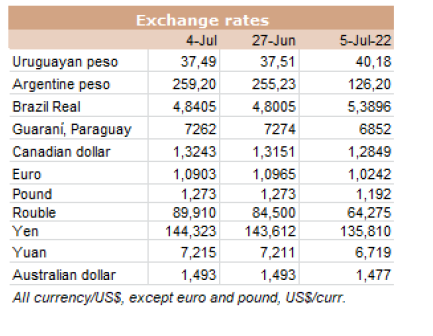 阿根廷和烏拉圭本周的價(jià)格下降了10美分,分別為每公斤3.81美元和3.50美元。