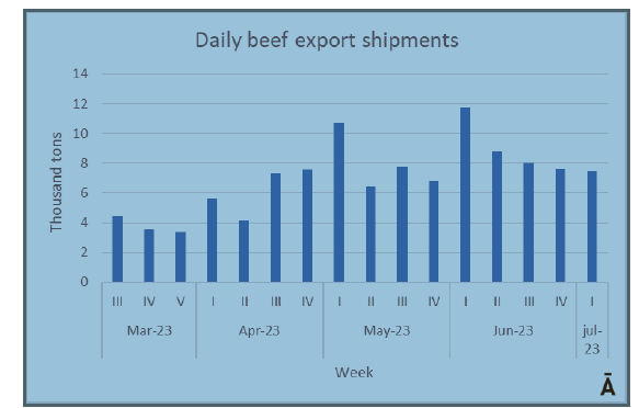 6月份對中國的牛肉出口數據顯示,出口量接近去年下半年創下的月度記錄,考慮到近幾個月需求的顯著疲軟,這一點令人震驚。