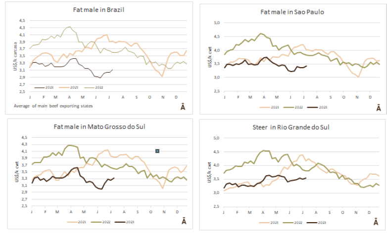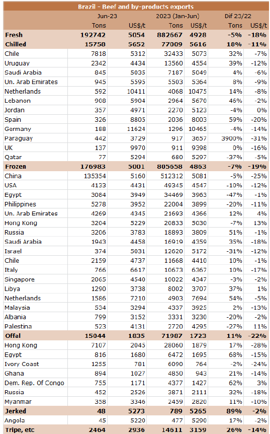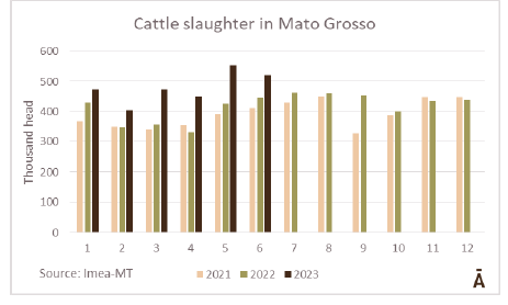 6月份,巴西主要牛肉供給州馬托格羅索的牛屠宰總量為51.98萬頭,略低于上月的55.2萬頭,但比20226月的44.6萬頭高出16.7%。根據伊米亞的說法,這是歷史系列中六月的最高記錄。