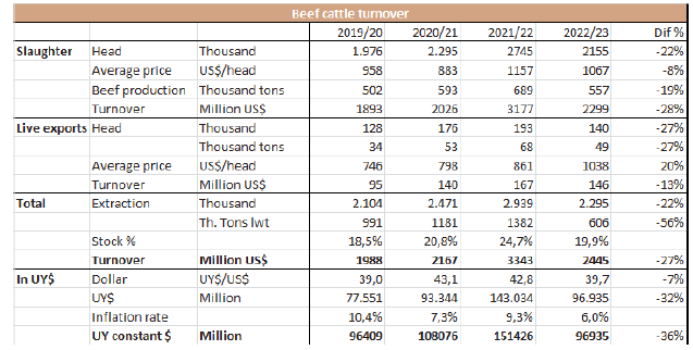 20222023年烏拉圭肉牛肉營業額減少約9億美元
