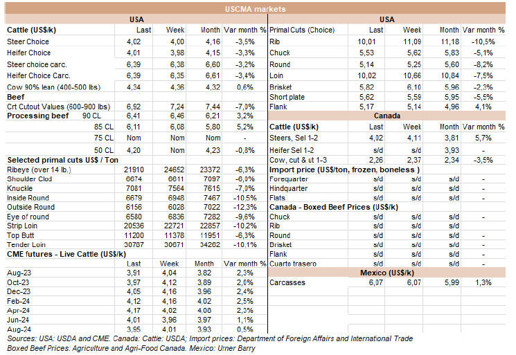 牛屠宰市場擺脫了56月期間普遍存在的劇烈下跌趨勢,上周一些特殊產品因為沒有達到理想的價格而成交。