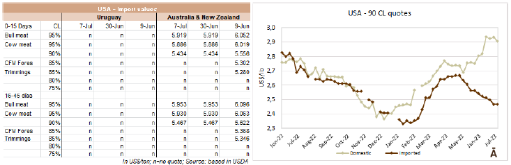 在這種情況下,烏拉圭向美國銷售的肉類價格基本穩定,90Cl非配額參考價格保持在4000美元/CFR95Cl保持在4250美元/