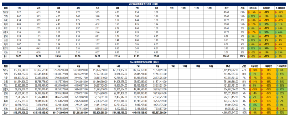2023 年 8 月冷凍豬肉進(jìn)口概況