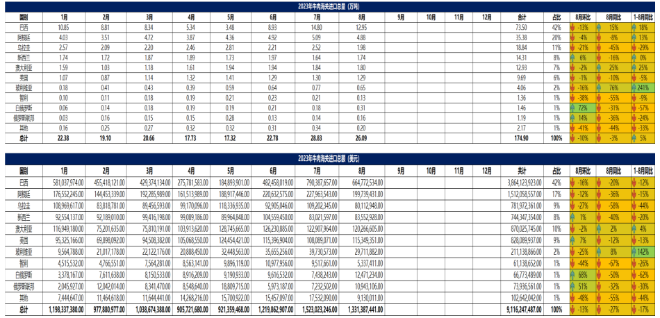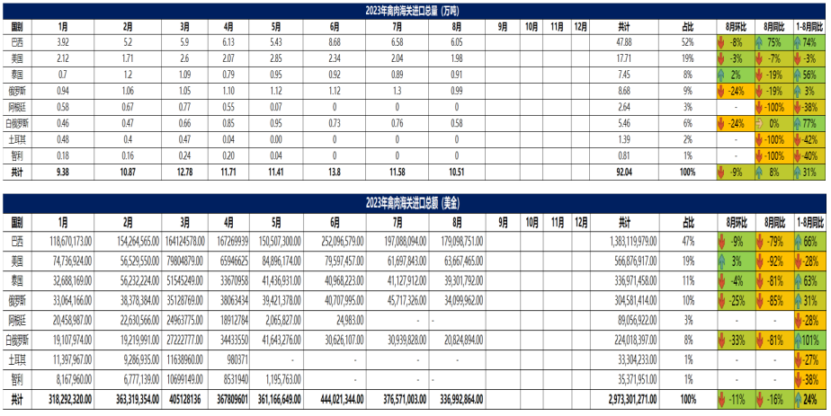2023 年 8 月冷凍牛肉進(jìn)口概況