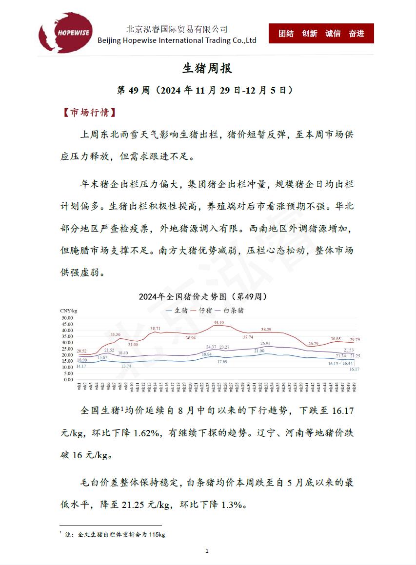 生豬周報第49 周(2024 年11 月29 日-12 月5 日)