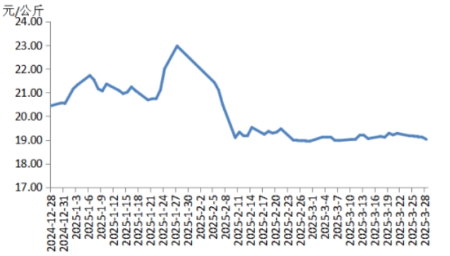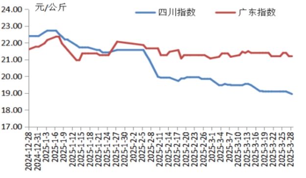 本周,廣東地區(qū)豬肉周均價為每公斤21.28元,環(huán)比下跌0.4%,同比下跌1.1%,結(jié)束了同比上漲趨勢。周前期,生豬供應(yīng)較為平穩(wěn),屠宰企業(yè)按需收購,生豬及豬肉價格以穩(wěn)定為主;周中期,散養(yǎng)戶和規(guī)模養(yǎng)殖場出欄節(jié)奏放慢,生豬及豬肉供應(yīng)短時收緊,支撐豬肉價格小幅反彈;周后期,周邊市場豬肉價格下跌,本地區(qū)經(jīng)銷商和消費者壓價采購,屠宰企業(yè)為保證銷量降低售價。總體看,廣東地區(qū)豬肉周均價環(huán)比微跌。