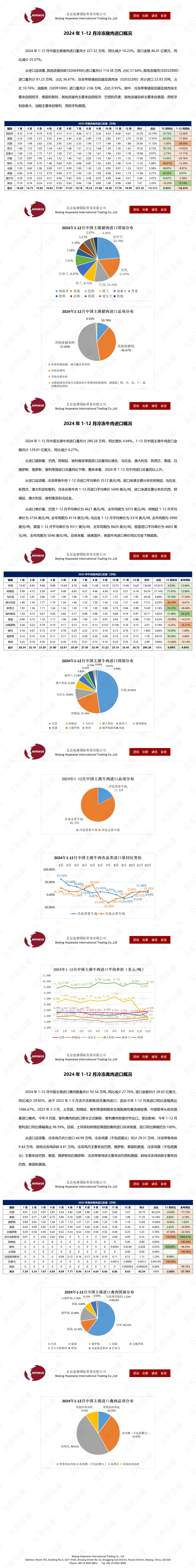 2024年1-12月冷凍豬牛禽肉海關進口數據